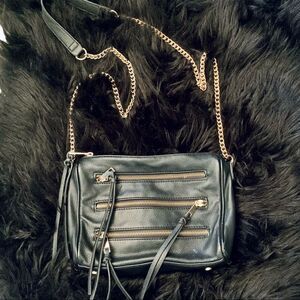 Black & Gold Faux Leather Crossbody Bag Size OS