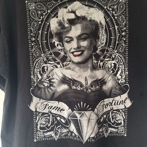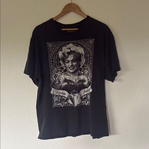 Black t-shirt featuring a striking graphic Marilyn Monroe print