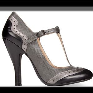 Super cute heels with black, shiny pewter and gray 🐊 croc embossing. Mid center strap. Closed toe shoes barely worn Sz 8.5