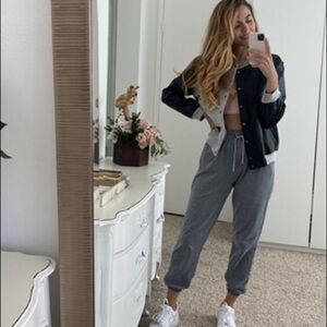 Black/Grey Colorblock Vegan Varsity Faux Leather Jacket Sequins Details