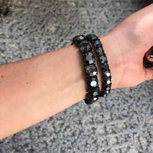 Black/Grey Crystal Stud Elastic Bracelet SET