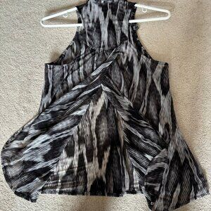 Black/Grey Striped Top - Button Front - Overlap/open back