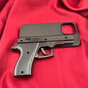 Unique gun-shaped phone case in sleek black. Perfect for adding a bold statement to your device.