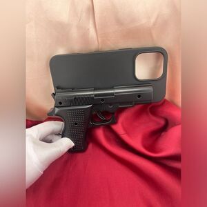Unique gun-shaped phone case in sleek black. Perfect for adding a bold statement to your device.