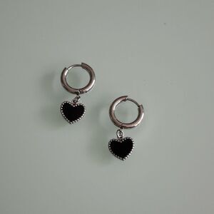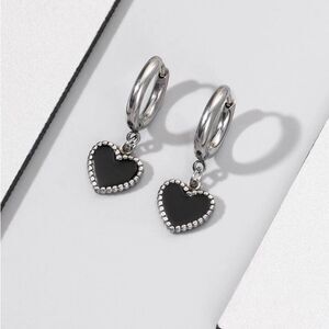 These elegant black heart hoop earrings add a touch of sophistication to any outfit. Perfect for any occasion.