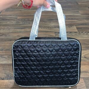 Black Hearts & Silver Glitter Cosmetic Travel Bag