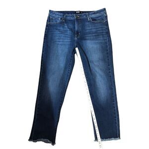 Black Label high rise medium wash frayed hem jeans. Whiskering, button and zip closure. Has plenty of stretch. NWOT