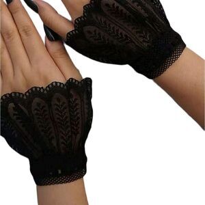 New! Black lace scalloped edge cuffs. Dress up any long sleeve shirt, sweater, or jacket with these beautiful cuffs. Approximately 6" long. Comes in a set of two. Bundle to get 30% off.