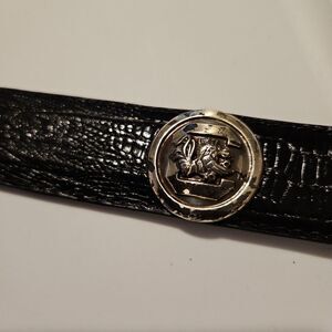 Black Leather Belt with Silver Buckle waist 32"-35" Vintage USC GAMCOCKS rare