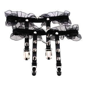 Black Leather Lace Thigh Harness Silver Heart Spiked Legwear Garter Belts - NEW