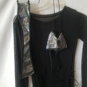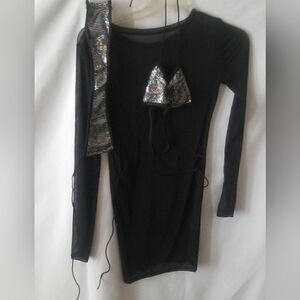 Black Long Sleeve Mesh 3PCS Rainstones Club , Lingerie , Swimwear, Sleepwear sz Large