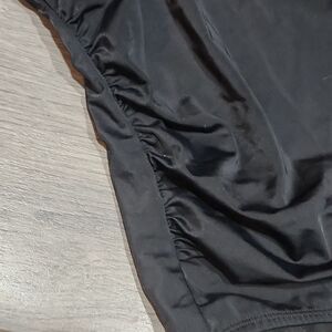 Black Mesh Gold/Silver Studded Rouched Swimsuit, excellent condition and no flaws or signs of wear but tags have been cut out. Im a 12/14 in swimsuits and it fits me.