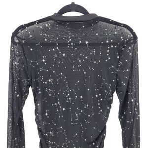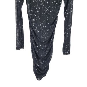 Black Mesh Long-Sleeve Bodycon Dress Sz L Star Constellation Print Witchy Gothic