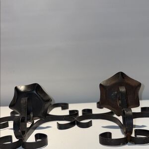 Elegant black metal candle sconces with a unique design. Perfect for adding a touch of sophistication to any space.