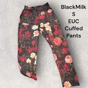 BlackMilk EUC dark roses cuffed pants small