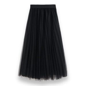 Black Multi Layer Mesh Pleated Long A-line Midi Skirt -NEW