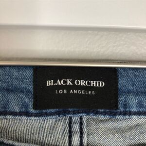Black Orchid | Valencia Distressed Raw-Hem Bardot Straight-Leg Jeans - Women-NWT