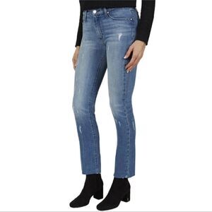 Add effortless style to your classic denim collection with these straight-leg jeans embellished with distressed details and on-trend raw hems.
