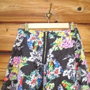 Gracia Black Parrot Bird Print Floral Full Skirt