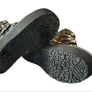 Material: faux leather, rubber sole, silver hardware. Vegan leather