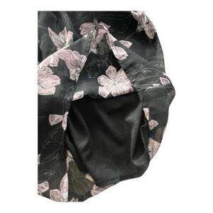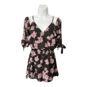 Black Pink Floral Chiffon Romper Size XS Short Lined Elastic Waist Button Front