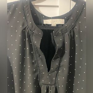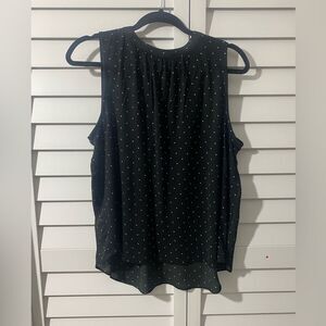 Chic and versatile black sleeveless top with white polka dots. Perfect for any occasion. 1-58