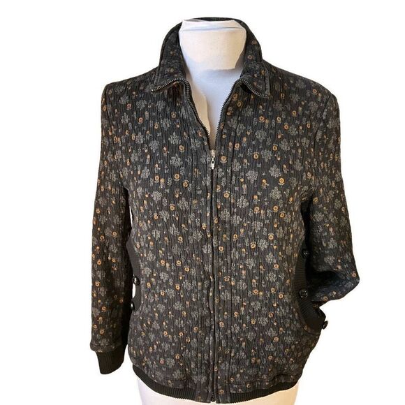 Black Quilted Floral Zip Up Bomber Jacket, M