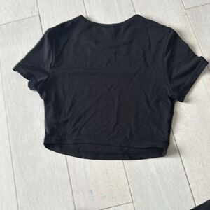 Never been worn brand new black crop top T-shirt Elastic give. Not a cotton T-shirt.