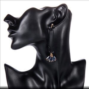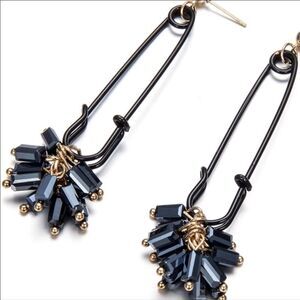 Black Safety Pin Floral Seed Bead Dangle Earrings -NEW