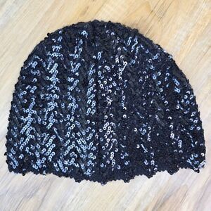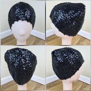 💜Black Sequined Beanie Beret Cap One Size