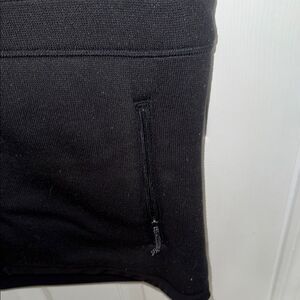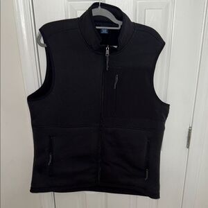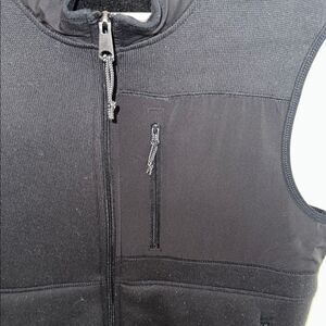 Stylish black sleeveless vest with zip-up front. Features multiple pockets for convenience.
