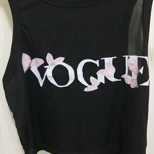 Black Sleeveless Halter V-Neck Cotton Printed Tops sz Medium