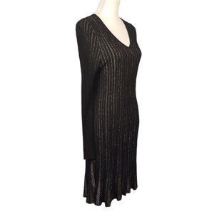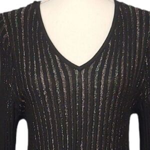 Black Sparkly Long Sleeve V-Neck Party Dress XL