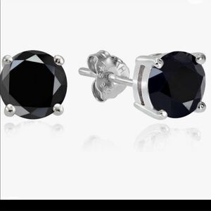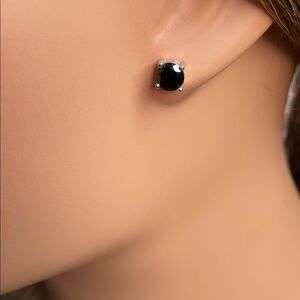 Black Spinel stud sterling silver earrings 1CT Each 6mm