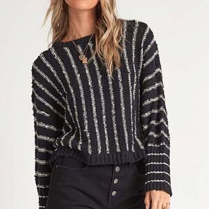 Layer up your look with this stylishly slouchy sweater that's outfitted with a cropped hem and boho-inspired stripes.
