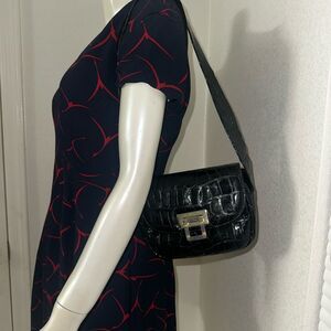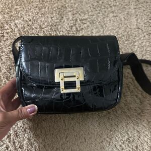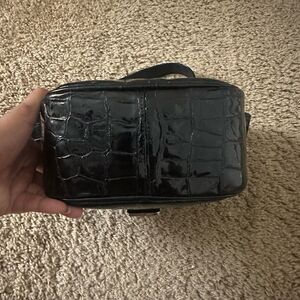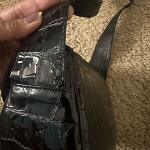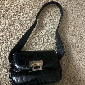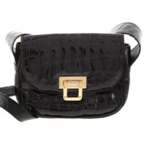 Black Stuart Weitzman Patent Leather Croc Bag