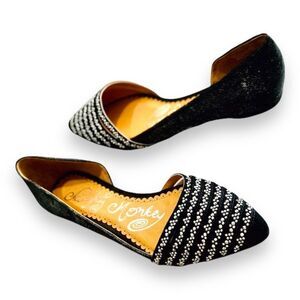 Black Suede Leather Cut Out Pointed Toe Ballet Slip Ons Loafers NEW