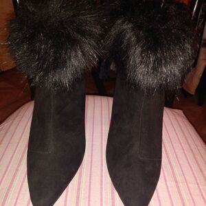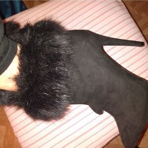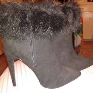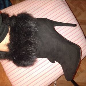 Black Forever 21 Swede heels with black fur around the top, size 8, excellent condition