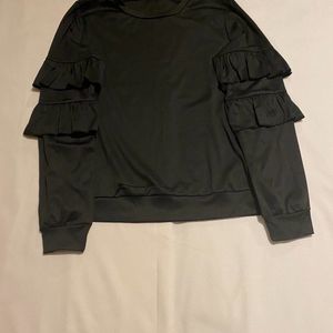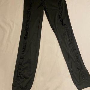 Black Tracksuit Jogger Set Top and Bottom in Black. Ruffle accents on sleeves and pants. Size Medium. New without tags.