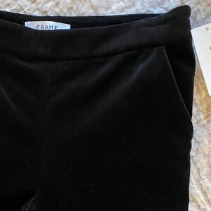 Elegant black velvet pants with a stylish flare design.