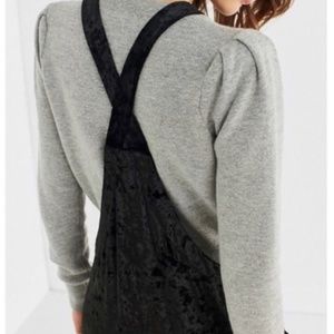 Black Velvet Romper low sides and a cross strap in the back. Very comfortable and relaxed fit.