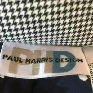 Black-and-white checked, button up, long sleeve blazer, two front pockets. Lined.