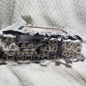 This stunning black and white lace Victorian-inspired junk journal is a treasure for any creative soul. Measuring 9.5 x 6 x 2.5 inches, it's the perfect size to carry with you or keep on your desk.
