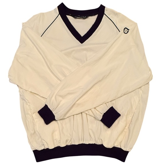Black/White Lightweight Golf Windbreaker Shirt Jacket V-Neck/Side Pockets Large