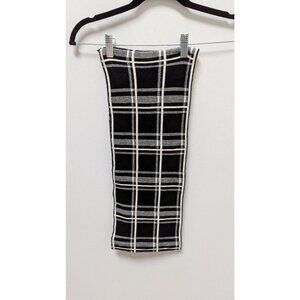 Black/White Plaid Knit Infinity Scarf. Very gently used, with very minor snags. It is made of a thick knit material.