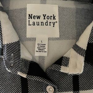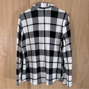 Black/White Plaid Stretch Button Down Top