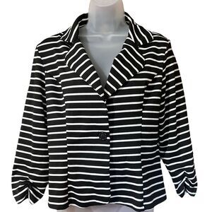 Black & White Striped One Button Blazer Jacket 3/4 Sleeves Sz XL
