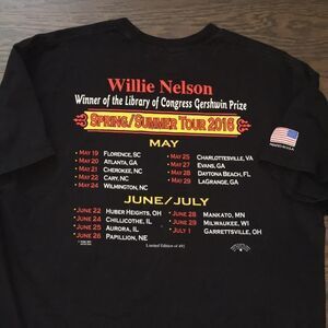 Black Willie Nelson Spring/Summer 2016 Summer Tour concert T shirt printed in TX