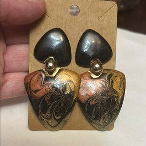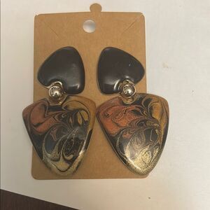 Bold black and gold statement earrings with a unique swirl design. Perfect for adding a touch of elegance to any outfit. 347