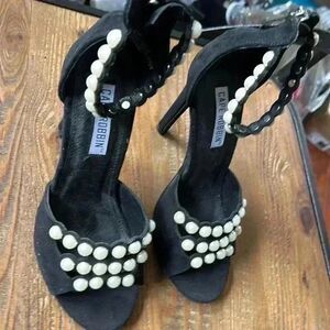 Black suede with Pearl detail and strap. 4 inch heels shown in pic. Brand new.
